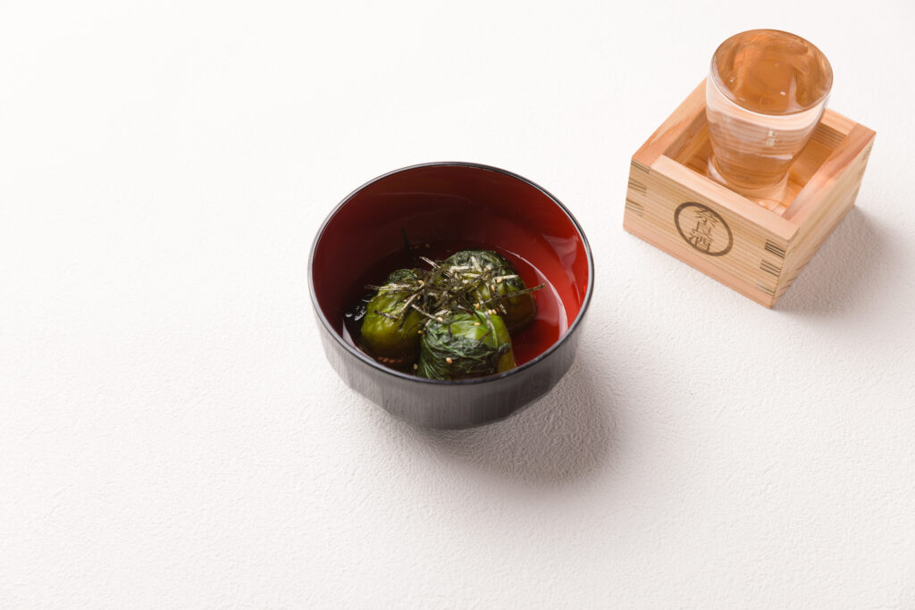 The generous pour of nama-zake (unpasteurized sake) overflowing the masu (wooden box) is called “mokkiri” – a traditional serving style that demonstrates hospitality and generosity. This presentation enhances the experience by allowing you to enjoy the compatibility with the wood’s aroma and the freshness of the sake. Savor the overflowing nama-zake while immersing yourself in the stories of the ancient capital’s culture and history.
