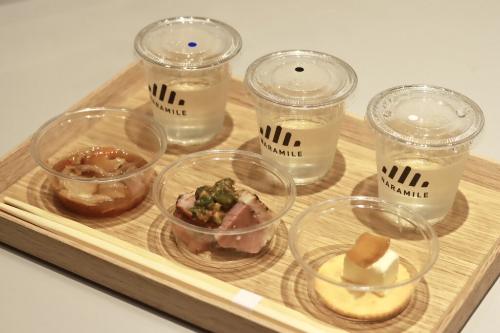 ナラマイルセレクトのワンコイン日本酒からお好きな3種をお選びいただけます。